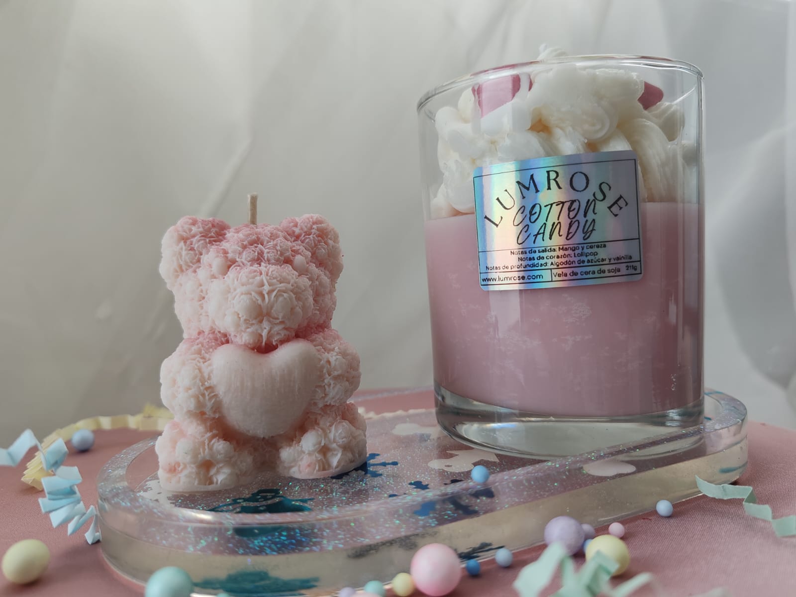- Vela Cotton candy (mix de aromas cherry, algodón de azúcar, vainilla y lollipop)